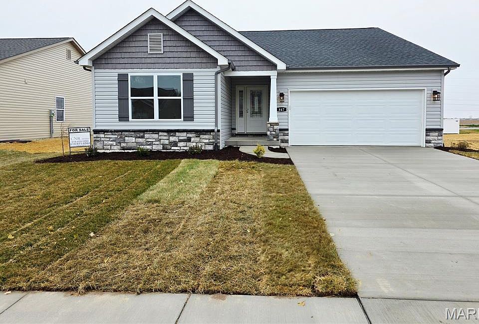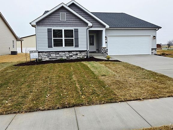 Experience refined living in this stunning new construction inspired by the Dakota floor plan. Boasting 1,900 square feet of beautifully designed space, this charming ranch offers 3 bedrooms, 2 bathrooms, and a full unfinished basement with future potential. The heart of the home is the open-concept kitchen, showcasing granite countertops, a large center island, pantry, and abundant cabinetry—perfect for everyday living and entertaining. The kitchen flows seamlessly into the dining area with a soaring cathedral ceiling and continues into the spacious living room, highlighted by a cozy fireplace. The luxurious master suite is a private retreat, featuring a spa-like bath with dual vanities, separate shower and tub, and a generous walk-in closet. The full unfinished basement is already plumbed for a future bath, offering limitless potential to expand. Enjoy the outdoor patio space for gatherings or quiet evenings under the stars.