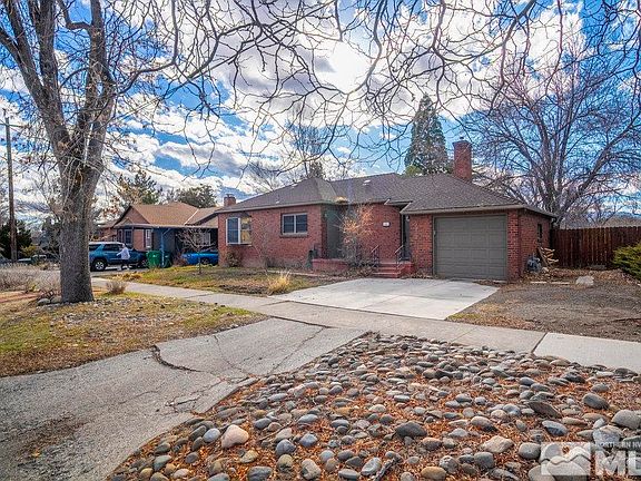 This charming brick bungalow, within walking distance of the University of Nevada, Reno campus and Rancho San Rafael park, presents a rare opportunity to create your dream home in a highly desirable location. While this 1947-built residence requires some TLC, its solid bones and prime location offer incredible potential. Imagine the possibilities within the 1,078 sq.ft. single-level floor plan, featuring hardwood floors and a comfortable layout. [See Extended Remarks for more details.], A full unfinished basement, accessible from both the kitchen and the attached one-car garage, effectively doubles the square footage and offers a blank canvas for expansion. The 0.14-acre level lot, complete with mature trees and a fully fenced backyard, provides ample outdoor space for relaxation and entertaining. Enjoy morning coffee on the covered back porch overlooking the private yard. With no HOA, low taxes, and a great central location, this property is a great value for those looking to personalize their space. Don't miss this chance to make your mark on this promising property!