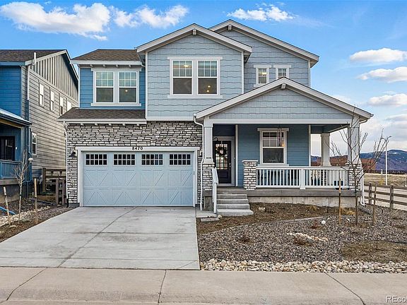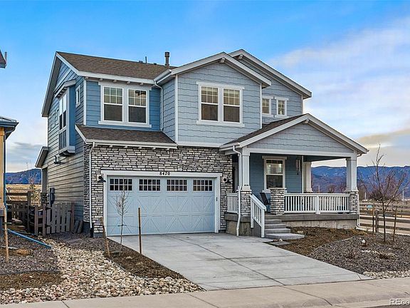 This remarkable DreamFinders home, completed in 2023, offers breathtaking, unobstructed mountain views. The highly sought-after 'Canyon' model is a two-story masterpiece designed for modern living and entertaining. It features an expansive open great room adorned with a gas fireplace, an office with French doors on the main level, and a luxurious primary suite accompanied by two additional bedrooms and a versatile loft upstairs.