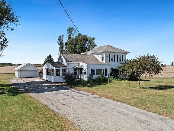 Full of character and country charm, this spacious farmhouse sits on a peaceful 2-acre lot and offers over 1,800 sq ft of comfortable living space. With recent updates and classic features throughout, this home is the perfect blend of old-world charm and modern convenience. Step into the inviting enclosed porch, perfect for enjoying your morning coffee, which leads into a generous mudroom/laundry room-ideal for country living. The updated kitchen boasts white cabinetry, ample storage, wood laminate flooring, and space for a breakfast table. It flows seamlessly into a spacious dining room with hardwood floors that continue throughout most of the main level. The cozy family room features a wall of windows overlooking the front yard and a wood chip stove to keep things warm and welcoming. An additional living room is located off of the dining room and connects to the main-level primary bedroom. A full bath completes the main floor. Upstairs, you'll find two generously sized bedrooms and a large attic space for storage. One of the bedrooms even includes a huge walk-in closet that could double as a sitting room or office space. Outside, enjoy the peace and privacy of your land, a 2.5-car extended garage, and a storage shed. Plus, with newer windows and roof, you can move in with peace of mind. Located in the sought-after Rockton/Hononegah School District, this one-of-a-kind property is perfect for anyone looking to enjoy space, charm, and tranquility-just minutes from town.