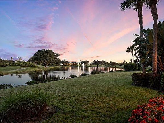 Delightfully sunny, this pristine end-unit coach home offers fabulous forever lake and golf course vistas of the picturesque seventh hole with no other buildings in sight, complete with preferred southern exposure. IMMEDIATE FULL GOLF MEMBERSHIP AVAILABLE. The light and bright airy feel is complemented by an open great room layout, fabulous renovated white kitchen is ideal for entertaining with large counter-level quartz island, beverage refrigerator, 42-inch cabinetry, stainless steel appliance package, new wide plank white oak LVT flooring, new light fixtures, fans and LED lighting throughout. Perched on one of the best lots in the complex with across the street to the community pool, eight guest parking spots and the mailboxes, this lovely condominium comes complete with one of the quietest locations in the development. Features include a wraparound lanai with pocket sliders and hurricane shutters, additional golf cart garage, newer building roof, loads of storage, main closet custom built-ins, large walk-in closet in one guest room, built-in desk in the other guest bedroom and paver driveway completes the package. Immediate full golf membership available in this one-of-a-kind club with an active lifestyle and a variety of memberships available (minimum social membership required). Estero Country Club offers a beautiful, award-winning Gordon Lewis golf course, recently renovated clubhouse with fabulous dining options inside and out, four tennis courts, six pickleball courts, state-of-the-art fitness center, bocce and an abundance of social activities throughout the year.