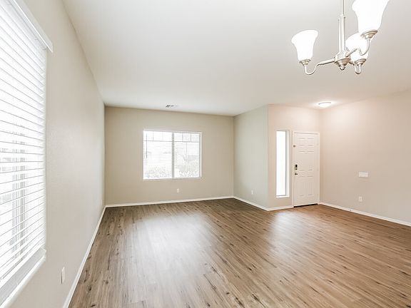You'll love the beautiful landscaping that greets you at this impressive rental home in Peoria, Arizona. The charming four-bedroom, two-bathroom house includes an open floor plan featuring a comfortable living room and adjoining dining area. The space boasts lovely vinyl plank flooring and a graceful three-light chandelier to dine under. Enjoy preparing meals in the stylish kitchen. It features stainless steel appliances, a convenient island breakfast bar, and a walk-in pantry. You'll treasure the gorgeous bay window and gigantic walk-in closet offered in the main bedroom. The en-suite bathroom includes an oversized tub. Spend outdoor time on the covered patio, a perfect place for entertaining. Apply now for a tour.