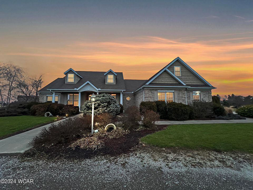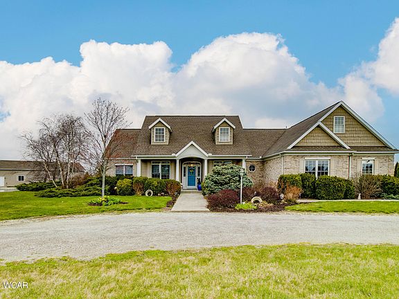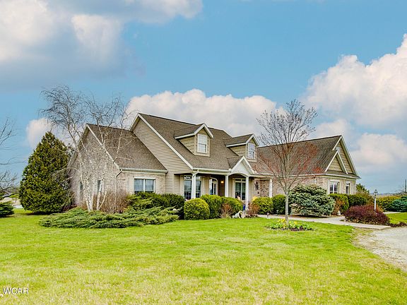 This spectacular single-family residence is the pinnacle of luxury and comfort, sprawled across an expansive 10.39 -acre property in the coveted Elida School District. With 4 spacious bedrooms and 4 beautifully designed bathrooms. 200 trees along with a horseshoe driveway. A warm welcome awaits as you approach, framed by the elegance of a Stella cherry tree and three flourishing peach trees. As you explore the property, discover the captivating centerpiece—a .8-acre pond, 13 feet deep, hosting a thriving aquatic world for the avid angler. The scenic surroundings provide an idyllic backdrop for tranquil fishing excursions. Adding to the allure is a remarkable 30 x 60 outbuilding, a versatile space catering to your storage needs, serving as an ideal workshop or a haven for hobbyists. This space offers the convenience of water, electricity, and sewer hookups, presenting an excellent opportunity for RV enthusiasts. Has luxurious master suite that features a cathedral ceiling, Brazilian hardwood floors, and a gorgeous en-suite with a large tub and walk-in porcelain tile shower. The suite's walk-in closet and dual sinks add to the convenience and sophistication. The entertainment possibilities are endless with a fully finished 1683 sq ft basement, which houses a cozy bedroom with a cedar-lined closet, a full bath, a custom bar, and a warm gas fireplace, all protected by a triple sump pump. Upstairs there is a gourmet kitchen, boasting commercial-grade appliances, Corian countertops, custom cabinets, and an oversized pantry. Adjacent is a formal dining room and a home office, which features custom cabinetry that extends into the basement bar area. Living spaces are elevated by the exquisite tray ceiling, crown molding. surround sound system, and a wood-burning fireplace, complementing the hardwood floors. An enclosed 3-season room offers a peaceful escape with scenic views. Step out onto the composite deck and enjoy the Amish-built gazebo.