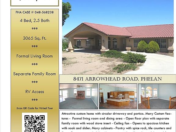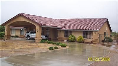 Desert Living, large lot, good location with paved access. Large Master bedroom with fireplace, nice large closet. Shower and Tub are separate. Formal living area, with large family and kitchen area is spacious and light. Large portico in front with circular drive. Call me to take a look.