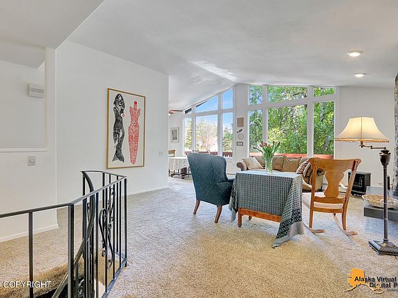 4 bedroom Chugach Foothills on quiet street with creek running behind the property. Reverse floor plan ensures maximum natural light, and large deck off the kitchen is amazing for summer lounging, box gardens and entertainment. Vaulted ceilings and large living and family rooms.