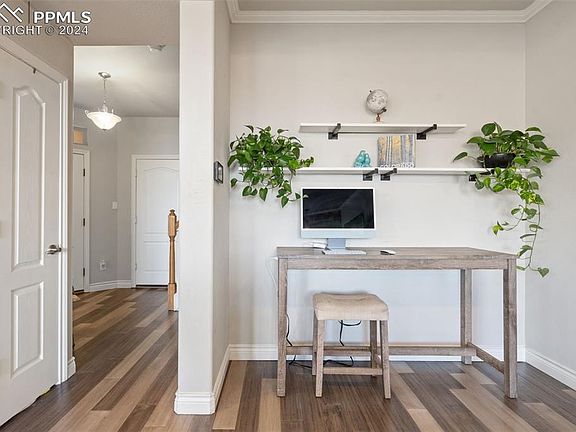Welcome to this exquisite three-story townhome located in the highly sought-after Harvest Springs community, where panoramic mountain views and stunning vistas of Pikes Peak create an idyllic backdrop for your lifestyle. This meticulously designed residence features three bedrooms and four bathrooms, complemented by an oversized two-car garage, providing both space and convenience. The modern open floor plan showcases a newly remodeled kitchen, equipped with custom cabinetry, upgraded flooring, contemporary lighting, and a professional-grade 6-burner gas stove, perfect for culinary enthusiasts. The main level flows effortlessly from the inviting living and dining areas to one of two outdoor porches, ideal for savoring breathtaking sunsets and observing the area's vibrant wildlife. Ascending to the upper level, you will discover two generously sized bedrooms, including a luxurious master suite that offers a serene retreat, along with a practical upper-level laundry room. The lower level presents a versatile 24x24 flex space, perfect for a home office, media room, or guest suite, complete with its own bathroom and convenient walk-out access to a covered patio. Situated within the award-winning District 20 school district, this property is just a short ten-minute drive from major retailers such as King Soopers, Target, and Safeway, as well as providing quick access to Children’s Hospital, St. Anthony North, the Powers Corridor, I-25, and various military installations. Recent upgrades, including a new roof (2024) and water heater (2023), along with city-installed internet cables, enhance the home's appeal, seamlessly blending modern luxury with practical amenities. With proximity to walking trails, parks, and outdoor destinations like Black Forest and Garden of the Gods, this townhome is perfect for families and outdoor enthusiasts alike, offering a lifestyle that celebrates both comfort and adventure.