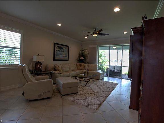 Available Now! . Also available as a turn key annual or seasonal lease 2025-2026. This rarely available Monterey floor plan has 3 bedrooms and 2 bathrooms. Furnished comfortably with a big lake view and large back yard perfect for relaxing in the screened lanai. Verona Walk offers 24 hr. guarded gated entry, lighted tennis, bocce ball, basketball and pickle ball courts, resort-size community Lagoon pool, lap pool, tot lot, over 20 miles trails, 24/7 gym. Town Center has a post office, cafe/restaurant, ice cream Shoppe, hair salon, car wash, gas station, library, computer center, ballroom, card rooms, and a full-time activities director. Convenient to both Naples and Marco Island beaches, shops and fine dining, regional hospital and Edison college nearby. The low homeowner's association dues also include lawn care & irrigation, basic cable TV.