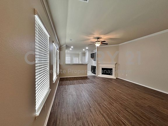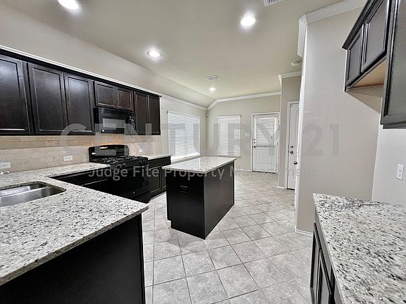 MOVE-IN SPECIAL! $325.00 OFF YOUR 2ND MONTH'S RENT! Charming 3/2/2 in Crowley ISD! Large living area includes a WBFP. Island kitchen features dark wood cabinetry, gleaming granite countertops and black appliance package. Primary suite offers dual sinks, garden tub and separate shower. Fenced yard with covered patio. Home is equipped with a sprinkler system and rear vehicle entry. Community amenities include pool, playground and greenbelt! Near Chisholm Trail! Only 2 dogs under 22lbs allowed with owner approval. No cats please. Washer, dryer and refrigerator will not remain at the property.