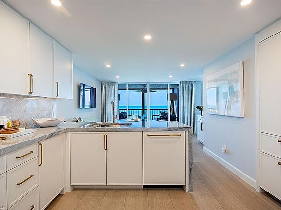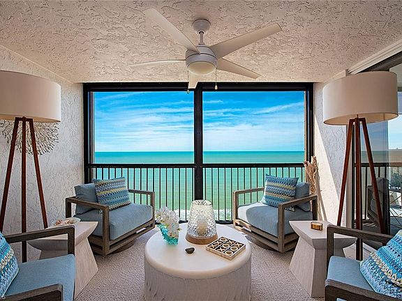 Experience coastal luxury in this beautifully reimagined three-bedroom, three-bath beachfront residence, expertly remastered by Professional Contractors Group. Every detail reflects refined craftsmanship and timeless design. The home features stunning, spa-inspired baths with exquisite fixtures and finishes, and a completely redesigned kitchen showcasing quartzite countertops, top-of-the-line appliances, and a charming morning room with built-in banquette seating and a custom coffee bar. The spacious living area opens to breathtaking, unobstructed views of the Gulf of Mexico, where sunsets paint the horizon each evening. Enjoy outdoor living at its finest with two west-facing screened lanais to capture the sunset, and a large east-facing screened lanai ideal for morning light and sunrise views. Beautifully furnished for comfort and sophistication, this residence is move-in ready. The Biltmore has also undergone full renovation, ready for you to enjoy.