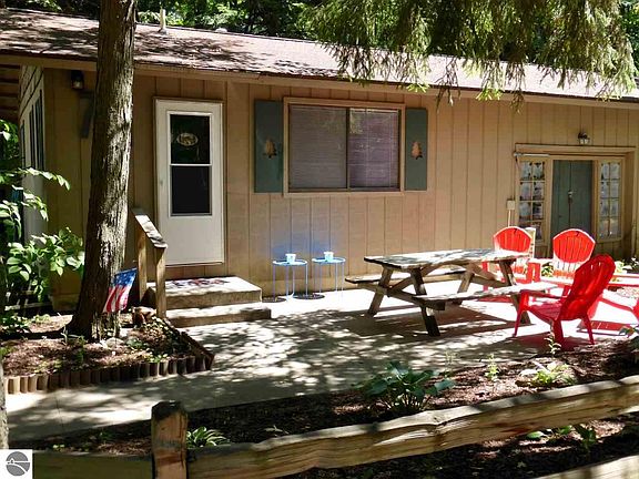 Sand, Water, Memories...Thinking about how to obtain your care-free vacation condo on Big Platte Lake with the option to dock your watercraft for under $120,000? Purchase this property now at today's prices and use the rental income to offset most of the taxes, insurance and utilities. This property has an established and successful rental program so should you decide to rent; you will not have to build your customer base - it's already done! You can kayak to Lake Michigan from your dock as this property includes 150 ft. of shared frontage on Big Platte Lake with a shallow, sandy beach safe for kids of all ages. This cozy four season, two bedroom/one bath condo is just the spot for year round fun complete with a playground and community fire pit. All furnishings are negotiable making a turnkey purchase possible. The Platte Lake Resort cottages are individually owned with the worry-free benefits of condo life. This is your "base-camp" to enjoy Pure Michigan! Close to Lake Michigan, world class trout streams, swimming, golfing, skiing, snowmobile trails, boating, fishing, canoeing, kayaking, tubing, etc...