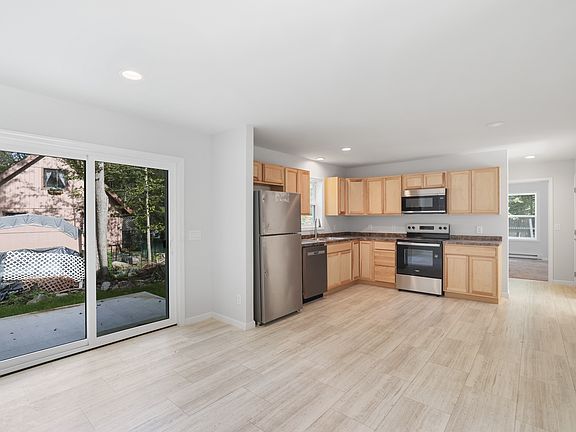 Wooded surroundingsBrand-new appliancesAmple counter spaceBrand-new patioBright open main levelSleek tile flooringModern kitchen