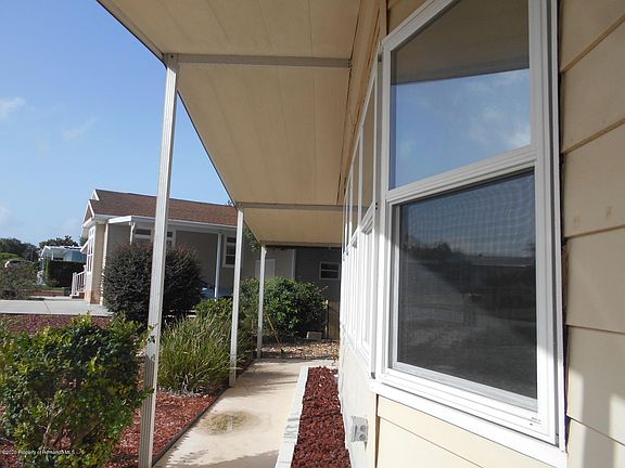 LOOK AT THIS WELL KEPT HOME , ALL PLYWOOD FLOORS WITH LAMINATED THROUGH THE HOME, NEWER UPDATED THERMO PANE WINDOWS ISLAND KITCHEN ,YEAR ROUND GLASS FLORIDA ROOM , EXTRA LARGE WORKSHOP WITH GOLF CART GARAGE, NICE FRONT PORCH AND SCREEN PORCH, THIS HOME ALSO HAS A ZERO SCAPE YARD NO MOWING !! COME DOWN AND ENJOY THE FLORIDA LIVING IN A 55 PLUS COMMIUNTY