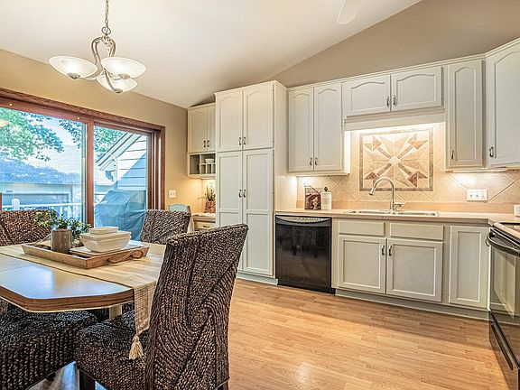 Welcome to this impeccably maintained townhome located in the heart of Maple Grove~ shops, restaurants, health club, community center, library, grocery, and everything else you need close by! Easy access to scenic trails around Rice Lake, convenient canoe storage and launching, and even a glimpse of the lake from your front deck! Experience easy main level living at is finest plus carefree association management! Family room offers gracious vaulted ceiling and a triple wide patio door for natural light and access to a second private backyard deck. Kitchen with stunning backsplash and fresh white cabinetry. Generous primary suite features French doors to a sun room with deck access. Luxurious owners bath offers 2 sink vanities, separate tub, and shower. Expansive finished lower level with a gas fireplace and so much space. Bedrooms with large walk-in closets! Main level laundry or leave in the huge lower-level workspace. Garage with built-in storage racks.