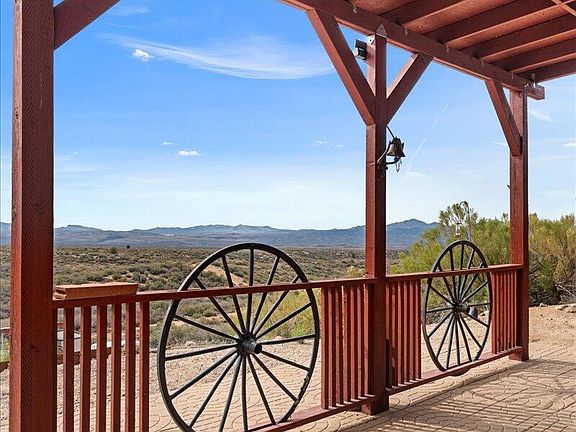 Views, Views, Views from every angle! This Santa Fe-style home sits across from BML land and is perfectly positioned to capture mountain views from nearly every window, peaceful privacy while ideally located between Prescott and Wickenburg. This spacious 3-bedroom, 2-bath home features a well-designed floor plan ideal for both everyday living and entertaining.The bright, country kitchen is the heart of the home, complemented by a private courtyard has a hot tub to sit under the stars, covered patios, and peaceful outdoor spaces to enjoy breathtaking sunsets. The property includes a 4-car detached garage, small livestock setup, chicken coop, and two storage sheds.A secluded RV area with full hookups includes a private storage shed w/ full washer / dryer and currently generates $1,500 per month in rental income. An exceptional opportunity for elevated country living. This home also qualifies for USDA financing with 0% down.