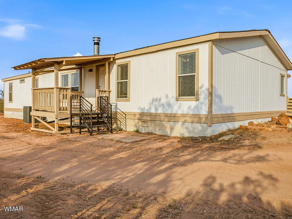 Remodeled home located on almost 5 acres, good access only 20 minutes from Snowflake. Huge deck off the rear of the home and front deck. Large storage building with fenced dog run. Remodel includes, all new appliances, A/C & heating unit, flooring, paint (inside and out), counter tops, light fixtures, windows in living room, new sinks and faucets throughout - see list in Associated document tab for more items. Master bath has new tub, walk in shower and toilet. 2 living rooms, The house area is fenced. Community well was updated in June of 2025. The cost of the well is $180 twice a year that covers the cost of the electricity and maintenance fund. There are currently only 3 homes on the well share. This home is move in ready. Cash, Conventional, FHA or VA available for financing.