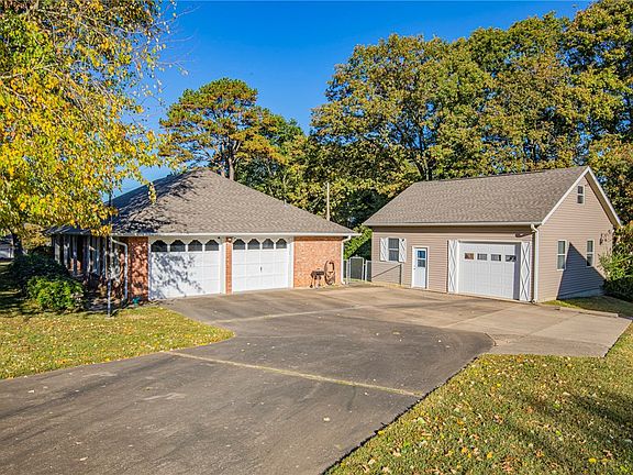 Don't miss out on this single level, brick home, a mile from the Hwy 12 launch ramp on Beaver Lake. This 3 bedroom, 3 bath home has multiple living areas, pontoon/RV parking, with a detached building that contains a 780 s.f. heated/cooled shop, third garage bay and ample storage area on the second floor. Roof was replaced in 2019, brand new 3 bedroom septic system fall of 2022, and 2020 hot tub ready for the fall weather!