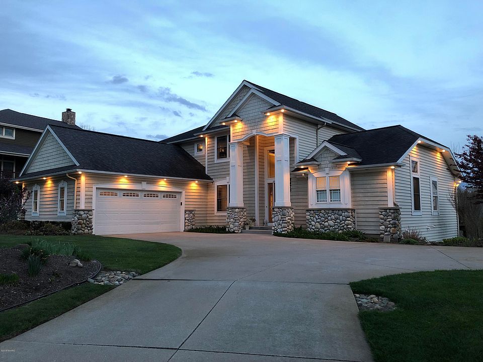 *** BEAUTIFUL HILLTOP CUSTOM HOME **ADA - FOREST HILLS SCHOOLS ** One of less than twenty homes in Ada with breathtaking seasonal views of both Grand River and Thornapple River valleys. This south facing .7 acre, 4 br 3 ½ bth custom built walkout is full of sunlight & sunsets, features an open floor plan, Two oven kitchen with two-tone cherry cabinetry; granite top island flows into large eating area & great room with slate fireplace & 20' ceilings - four sliders to an expansive deck. Formal dining room with granite tile wet-bar; Main floor master suite with fireplace & exquisite tile & glass, dual control shower & triangular jet tub; An open stairway up to loft/den & two additional spacious bedrooms and full bath. Finished lower level has 2nd master suite, & large rec room with walkout to large backyard with fire pit. One of three homes beyond end of cul-de-sac in a private 28 site, hilltop development surrounded by a 27 acre conservation easement complete with walking trails & creek. Beautiful sunsets. A wonderful neighborhood three minutes east from Ada Village. Shown by appointment to bank approved buyers only. Call and leave message. Sale / Lease back possible. Priced to sell below Zestimate & market value. Google Map 8478 Dunmore Ct. SE, Ada, MI 49301