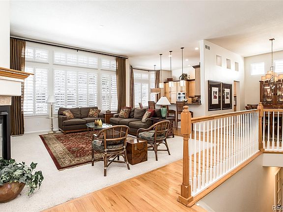Step into luxurious, low maintenance living at Brambleridge Village Patio Homes! This open concept ranch style home features a great room with high ceilings, gas fireplace and abundant windows with views to the oversized, private patio. The kitchen is graced by handsome wood cabinets, slab granite countertops, custom backsplash, a moveable walnut island, high-end appliances including a Thermidor induction cook-top and Fisher & Paykel dishwasher plus ample pantry-style cabinets. You’ll enjoy the sunny breakfast nook or entertain in the formal dining room. The primary suite is accented by high ceilings and detailed drywall finishes. The back deck is accessible from this bedroom! The adjacent bath has upgraded custom tile, heavy glass shower doors, mirrors and an all-custom closet!! Enjoy the convenience of the main floor study w/French doors as well as a main floor laundry with cabinets & tub. There are beautiful hardwood floors through the entry, dining room and kitchen. The basement was professionally finished with a multi-generational use design. There’s a game room area accented by a wet bar with sink and dishwasher, home theater space, powder room for guests plus two bedrooms joined by a Jack&Jill bath. The unfinished storage area is easily accessed. Heat provided by gas forced air + electric baseboard in basement w/multiple controls. The main floor was freshly painted this March!! Outdoor living will be a joy on the expanded composite wood deck with powder-coated metal railings and gas line for BBQ. You’ll be surrounded by lush landscaping. ALL areas are cared for by the HOA, including irrigation, tree and shrub maintenance, snow removal for sidewalk, driveway and walk to front door!! Easy living for you! New shingles in 2021. The location is less than a block to the community pool and nearby you can golf or hike in Daniels Park area!! Enjoy the convenience of nearby shopping and the charming town of Castle Rock for dining and entertainment.
