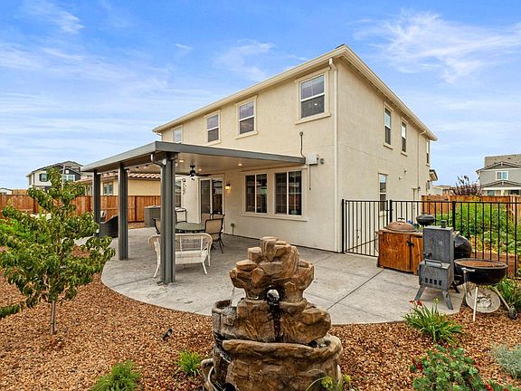 Come see what $150,000 in thoughtful upgrades looks like in this fully finished, move-in ready home-just 1 year old! The beautifully landscaped backyard includes fruit trees, vibrant greenery, & 4 fenced garden beds on a smart drip system-complete with salsa ingredients & even a Great Pumpkin! Relax by the fountain or entertain year-round under the lit, covered patio, complete with ceiling fan for warm nights & a firepit-ready area for cooler ones. Inside, enjoy smart, phone-controlled features like a preheatable oven, multi-zone thermostats, security & more. The upgraded floorplan flows, starting at the front door (ADA-compliant threshold); with a full bed & bath downstairs, a spacious dining area for family gatherings, open living room w-surround sound for movie nights, & an extra room with stylish French doors-perfect for a nursery, guest room, or office. CAT 6 wiring supports fast gaming & reliable remote working. Upstairs, the oversized primary suite fits a Cal-king bed, dog crates, & a rocker; & has a generous walk-in closet, dual-sink bath, & linen closet. Three more beds, full bath, & spacious family/game loft room complete the upper level. Lifestyle-friendly location. Why wait for new construction when this one has it all-landscaped, upgraded, & ready to move in today!