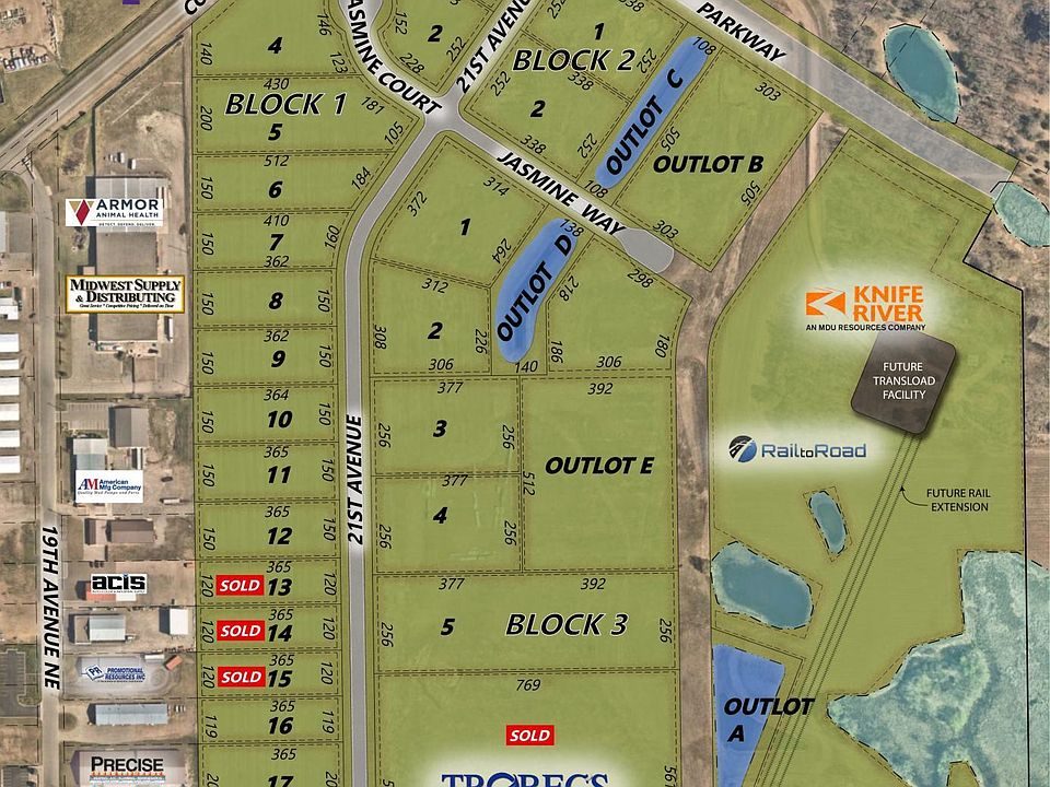 Welcome to Northland Business Center. The areas first “Rail Served” industrial park! All lots are build ready w/ 3 phase power, natural gas, fiber for high speed internet, 10 ton roads and a broad industrial zoning for a wide range of industrial users. Developer has plans for a transload station just to the east of the park so customers in the park can ship and receive product by rail. Many lots are included in the parks storm water plan and require minimal storm water management on site, this saves thousands of dollars maximizes the use of lot you buy.