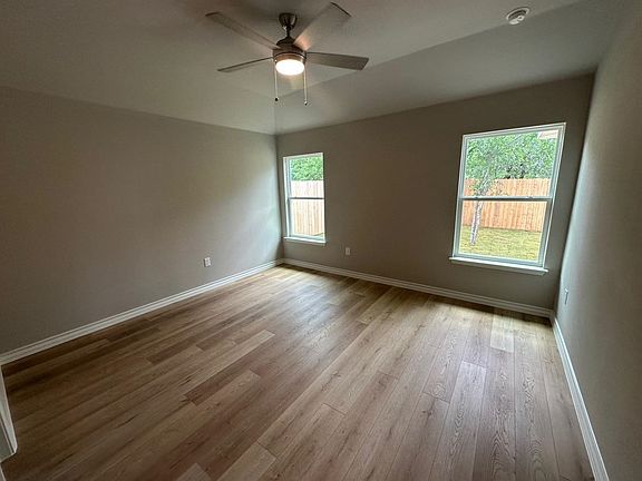 GREAT BUY!! READY FOR OCCUPANCY. $3000 in closing cost assistance if Builders preferred Lender is used. New home with split bedroom plan and open concept living/dining/kitchen area. Great kitchen with lots of cabinets and large island. Quartz counters in kitchen and baths, LVP flooring in all rooms with exception of tile in baths. Home has a privacy fenced back yard with sod and sprinklers in front and back yard. Access to Lake Marble Falls through property owners park just down the street. Refrigerator included in kitchen appliance package.