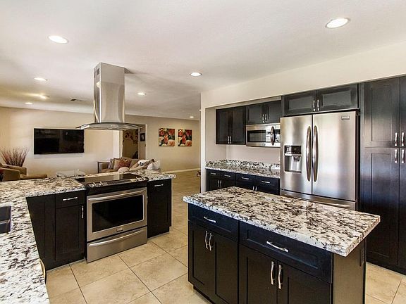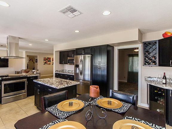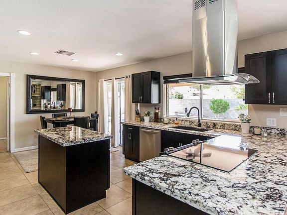 Single Level Slump block Ranch in Shadow Ridge! You will enjoy your kitchen time in this dreamy new kitchen totally renovated in 2016. Includes granite counters, smudge free stainless appliances and updated lighting. This one has it all featuring a den/office with built in shelving, front windows were replaced in 2011 with low e glass, 20 inch porcelain tile throughout, huge master suite with access to the covered patio and pool and situated on 10000 sq ft lot. NO HOA fees! See it today!