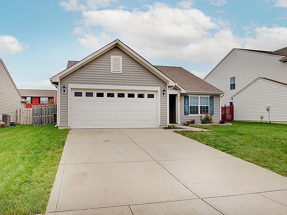 Desirable Briarstone Community in Whiteland School district! This popular Bradford floor plan is the definition of an "open concept" layout with soaring ceilings from the spacious kitchen to the great room! Kitchen features loads of countertop space & storage, separate pantry, stainless steel appliances and center island ideal for a quick meal or spreading out for cookie making. The formal dining or home office space is off the welcoming entry, and mud room laundry room is conveniently off the garage to drop the bags and shoes. The split floor plan gives the primary bedroom a "sweet" suite with walk-in closet, dual sinks and semi-private water closet. Enter the hallway with full bath and two more bedrooms! Fully fenced backyard, all appliances included. Shoe storage at entry is attached and conveys. New carpet thruout 2025, freshly painted 2025, kitchen hardware 2025, dishwasher 2025, water heater 2024