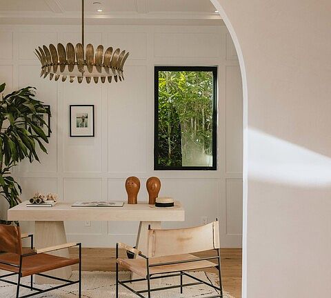 A new age Parisian vibe meets meticulously curated craftsmanship in this minimalist masterpiece. A truly magical find that strikes an ideal balance between indoor and outdoor spaces, as perfect for entertaining as it is for private moments. Hand crafted French clay walls with fluted details throughout. A study in perfect harmony - seamless open spaces, public and private spaces, timeless finishes, and smart technology. Meticulously crafted by House of Shoor, this 6000SF smart-home exudes all the makings of the perfect California retreat: a very large rooftop deck overlooking the Hollywood sign, generous public rooms include tall custom Iron doors, centering on a courtyard pool, a true entertainers theater room, a private massage room, and distressed French oak floors. The chic French bistro kitchen with double bullnose arabescato marble counters are complimented by beautiful unlacquered brass Water Works fixtures. Make use of the indoor wall garden and suspended garden for growing your indoor herbs and vegetables. Superb layout with a zero-edge dip pool centrally situated for kitchen views. With an abundance of living space, beautiful landscaping and unique spa-like features from the stone deck to the sunny living areas, this is truly a one of a kind property.