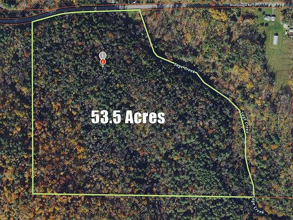 Prime 54± acre parcel in Windsor, Broome County, priced at $159,000. With long road frontage and electric available on site, this property offers an ideal setting for your cabin retreat or future home. Outdoorsmen will appreciate the eastern boundary along Sage Creek, a year-round stream known locally for its trout habitat. Whether you’re seeking land for a DEC Deer Management Permit (DOE), hunting, fishing, or simply enjoying the outdoors, this acreage delivers. The mix of open ground, woods, and water creates diverse habitat and endless recreational opportunities. A rare opportunity to secure a large tract at an attractive price. Mineral rights do not convey.