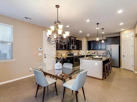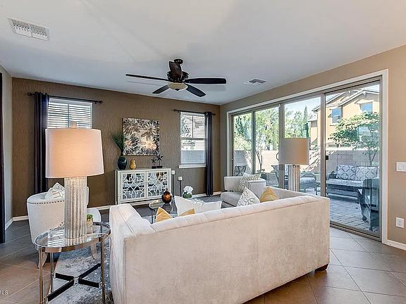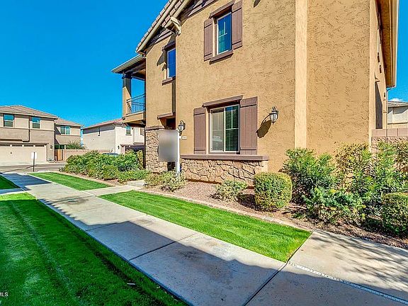 Meticulously maintained corner lot in the heart of Cooley Station North. This 3 bedroom 3 bathroom home, plus den, features an open floor plan with plenty of natural light. Spacious master suite with large walk-in closet and designer bathroom. Open loft upstairs can be used as living space, playroom, office or game room. Kitchen showcases granite countertops, tile backsplash, stainless steel appliances, island/breakfast bar, upgraded cabinets, huge pantry, porcelain tile flooring throughout first floor. Enjoy the water purification system and Reverse Osmosis water system. Front yard landscaping is maintained by HOA. The private patio (furnished) is a wonderful spot for entertaining and enjoying the outside. 2 car garage with cabinets for ample storage and Tesla EV charger. The home is situated in a perfect location - 1.5 miles to 202 freeway, 4 miles to 60 freeway. Close to grocery stores, restaurants, and entertainment in Downtown Gilbert. The safe and quiet community boasts 3 resort style swimmimg pools, 2 playgrounds, basketball court and several green belt areas. Located in the Higley Unified School District with middle school and preschool within walking distance.