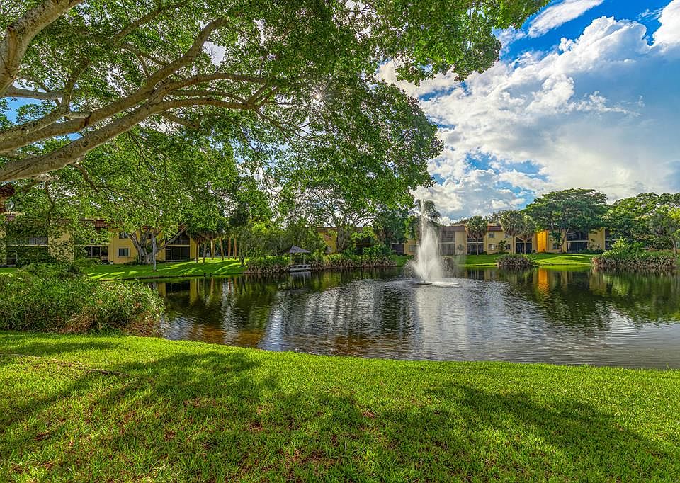 Renovated 2/2 Ground-Floor ALL-AGES condo with a GORGEOUS lake view located in the boutique-style community of Boca Terrace in Boca Raton. The moment you walk into the property, your eyes will see the lake with amazing fountain! Enjoy this wonderful view from the Screened Patio & Primary Bedroom. Features include Washer & Dryer inside, Ceramic Tile Flooring throughout, Tub and Stall Shower, & Hurricane Shutters. The lush landscaping with mature trees provide for peaceful living - enjoy as you walk along the trails. A-Rated Schools! Amenities: Clubhouse with Kitchen, Two Pools, Hot Tub, BBQ, Billiards, Library, Shuffleboard, & Tennis Courts. Located across from Sugar Sand Park. Short distance to Town Center Mall, Mizner Park, Lynn University, & Florida Atlantic University.