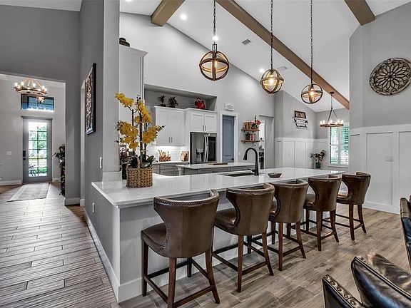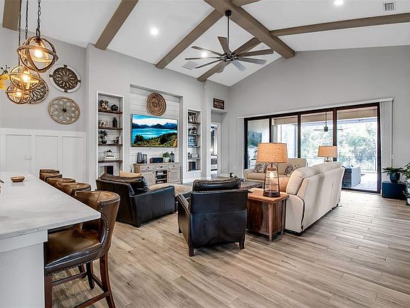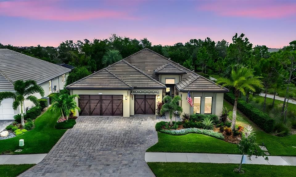 Introducing a residence of exceptional craftsmanship and timeless elegance, the Fairlead model by Homes by Towne, a gem in the desired Lakehouse Cove at Waterside in Lakewood Ranch. Encompassing over 3,000 square feet of refined single-story living, this impeccably maintained home offers three bedrooms, a private office, an expansive flex/game room, 2.5 baths and a spacious three-car garage, all set against a serene preserve backdrop with only one neighboring residence. Every detail of the home has been curated with an uncompromising commitment to luxury and style. The residence makes a stunning first impression with a beautifully landscaped exterior, slate tile roof, paver driveway and impact-rated windows. A grand entryway welcomes you into an open-concept layout that effortlessly balances everyday comfort with elevated design. Soaring ceilings with wood beam accents, designer lighting, and abundant natural light frame a warm and sophisticated interior. The great room is a showpiece, featuring a bespoke media wall with floating shelving, shiplap detailing, and contemporary finishes that invite relaxation and refined entertaining. At the heart of the home lies the chef’s kitchen, a masterclass in form and function. Outfitted with LG InstaView ThinQ refrigerator, a five-burner gas cooktop, a combination wall oven and microwave, quartz counters, continuous backsplash and a large island with bar seating for five, this kitchen is a culinary enthusiast’s dream. Two-tone cabinetry, metal hood and water filtration system complete the space. Adjacent, the formal dining area is elevated with board and batten detailing, ideal for intimate gatherings or stylish dinner parties. Enter through 9-foot impact sliders into a private outdoor retreat designed for year-round enjoyment. The expansive screened lanai features panoramic screening to fully showcase the breathtaking preserve views. Over 600 square feet of covered outdoor living includes a rich tongue-and-groove-stained wood ceiling, a luxurious 10-person spa, a summer kitchen with a custom garage-style door and elegant brick pavers, a setting designed to impress. The primary suite is a sanctuary of tranquility, thoughtfully at rear of the home to maximize privacy. Enjoy custom feature walls, dual walk-in closets with bespoke built-ins and a spa-inspired bath complete with dual vanities, a freestanding soaking tub and a walk-in shower. Two guest bedrooms offer deep custom closets and blackout shades for optimal comfort. Additional high-end appointments include 8-foot interior doors, rolling barn doors, soundproof wall in the flex room, plantation shutters, plank tile flooring throughout, custom mudroom and laundry room, designer ceiling fans, built-in storage and a fenced backyard. Residents of Lakehouse Cove enjoy unparalleled amenities such as a boathouse for kayak and paddleboard storage and launch, two lakeside fire pits, a water taxi to Waterside Place, a stunning clubhouse with catering kitchen and lounge, fitness center, resort-style pool and spa, six pickleball courts, bocce ball, playground, dog parks and over 20 acres of pristine shoreline. Positioned just moments from the amenities and a golf cart ride to Waterside Place, and a quick drive to UTC and SRQ Intl Airport, this home also offers effortless access to world-class beaches such as Siesta Key and Anna Maria Island. This is more than a residence, it is a lifestyle of elegance, comfort and connection.