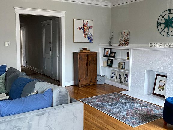 This second floor vintage unit has it all! Oversized rooms, abundance of sunlight, central A/C, stainless steel appliances and dishwasher, hardwood floors throughout, coin laundry in basement, sunroom, formal dining room, deck big enough for grill and patio set, parking spots available in back lot for $175 each per month, fireplace mantel and built-in shelving, and tons of closet space. Every room gets tons of natural light. Both bedrooms easily fit queen-sized beds, dressers, and more. Bedrooms are far apart within the apartment, giving lots of privacy.