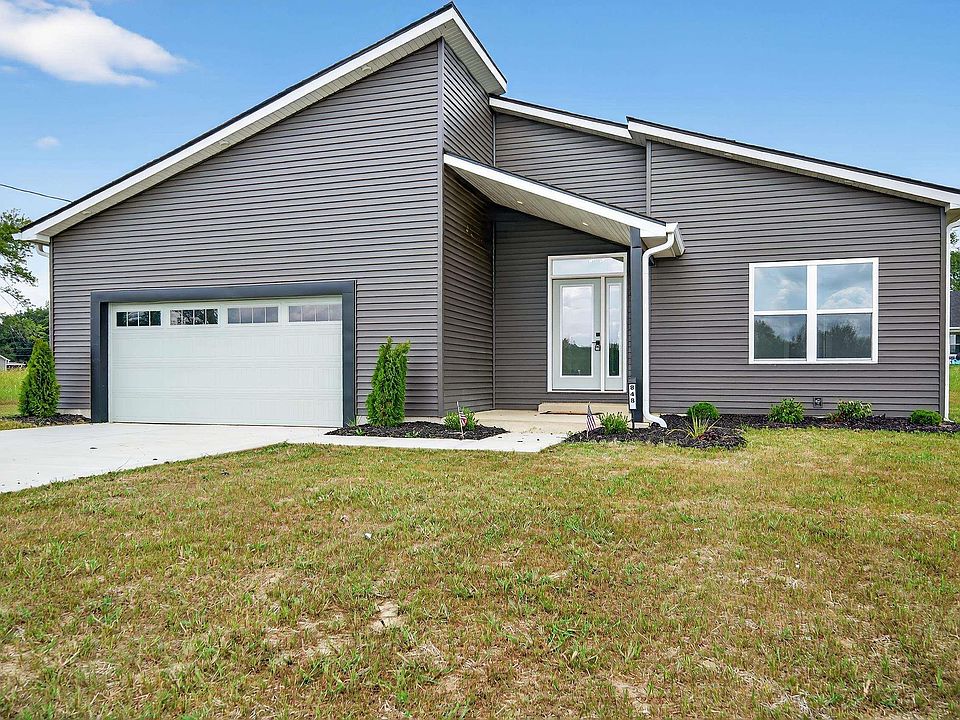 NOW OFFERING $5K SELLER PAID CLOSING COST CREDIT &/OR RATE BUY DOWN FOR BUYERS! Home is eligible for No Money Down/Low Money Down Financing! Brand New Construction 2025! Contemporary Meets Modern Flare! 1,800 SF Sprawling Ranch Style Home with designer finishes throughout! 4 Bedrooms & 2.5 Baths! Beautifully Crafted with durable stick framing & 9'+ Ceilings throughout! Luxury Vinyl Plank Flooring flows thru main spaces. Open Concept with Massive Great Room w/ accent fireplace, eat-in dining space, & custom finished kitchen w/ center island, granite counters, soft close cabinetry, & all of the features you'll love! Comfortable Owners Suite with vaulted ceilings, walk-in closet w/ so much room, & lavish en suite bathroom w/ tiled shower & dual sink vanity. Oversized 2 Car Attached Garage is finished & fully insulated. Energy Star Rated HVAC & Windows offer high efficiency. Exterior Accent Lighting Glows this special home. An intentional layout with modern appeal guarantee comfort in the heart of the Upland/Eastbrook Community! Ease of access to I-69, SR 22, SR 26!