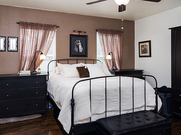 Welcome to this original 1930's home up on the hill above downtown, known as the Garden District where beauty abounds w/character, old world charm and you can hear church bells ring. Interior boasts hardwood floors, high ceilings, arch openings adjoining rooms. Large bedrooms, updated guest bathroom, split floor plan. Open concept incorporates the newer Master addition, updated kitchen with granite counters and old wood bead board and clapboard walls. Absolutely charming. Walk into the open kitchen, view this amazing appliance garage & coffee bar Pantry, & TV sitting Room that takes you outside to a lovely shaded courtyard. Entertain off the dining room through french doors onto an old rock patio. FALL IN LOVE HERE. Large lot has additional large rock 2000 sq ft building that housed the original washroom (now used as storage) a guest quarters (unfinished) and large garages (no doors) and workshop area (no ele. or water). Metal roof updated on garage. Garden area in back, private driveway with security gate. Walking distance to downtown, river-walk, coffee shops, churches, grocery, etc. Buyer Agent must be present at first showings for participation.