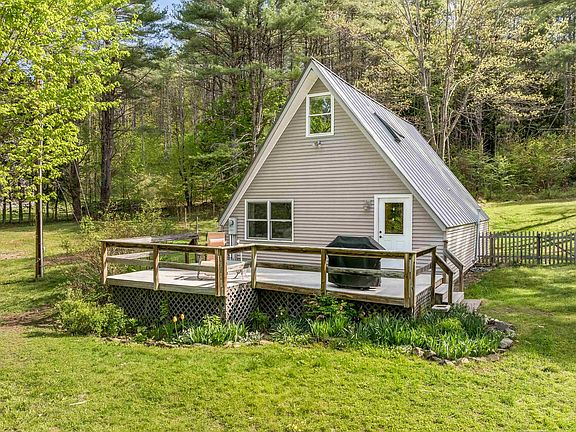 This sweet and cozy A-frame home offers the perfect blend of rustic charm and modern convenience, set on 2.8 acres of serene countryside across the road from a babbling brook. Enjoy the peace and privacy of your own fenced backyard, ideal for pets, play, or relaxing in nature. There are many established garden beds for your enjoyment as well. You'll find a flower garden full of tulips, daffodils, peonies and irises, blueberry and blackberry bushes, a weeping crab apple, hostas and ferns, just to name a few. A chicken coop adds to the country charm and hobby farm potential. Inside, you'll find a spacious living and dining area, a generous kitchen with ample counter space, a separate laundry room, and a dedicated office with direct access to the backyard. A full, roomy bathroom and two comfortable bedrooms complete the layout. The home’s distinctive A-frame architecture adds character and a sense of escape from the everyday. A large two-car garage offers ample space for vehicles, tools, and projects, with bonus storage above—perfect for extra gear. Conveniently located just minutes from all that West Lebanon has to offer, including shopping, restaurants, and easy access to major routes. A rare opportunity to enjoy peaceful country living without sacrificing town amenities.
