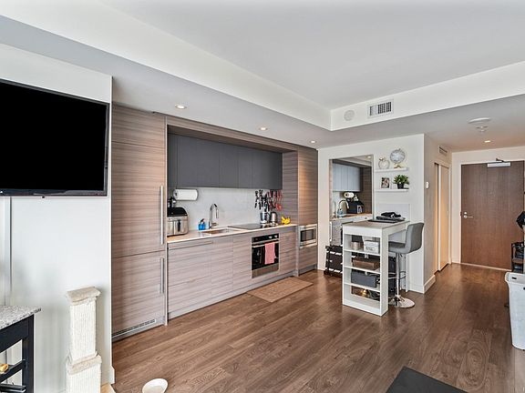 Expansive windowsAbundance of natural lightDynamic city viewsDesigner kitchenCustom cabinetryQuartz countertopsPrivate covered balcony