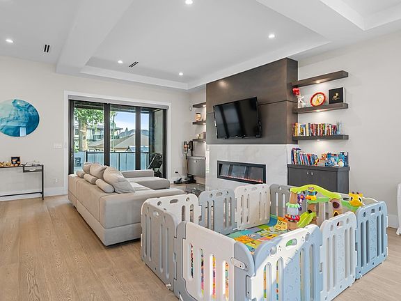 Modern Luxury Home. This stunning 8-bedroom, 7-bathroom residence offers over 4,300 sq. ft. of elegant living space on an 8,300 sq. ft. lot. Thoughtfully designed with soaring ceilings, open-concept living, and a beautifully crafted kitchen featuring high-end appliances and a spice kitchen. Comfort meets convenience with A/C, radiant in-floor heating, built-in speakers, surveillance and security. Enjoy a huge walk-out to a fully fenced yard, perfect for entertaining. Includes a legal 2-bedroom suite as a mortgage helper. Walking distance to school and community centres. This one is a must see.