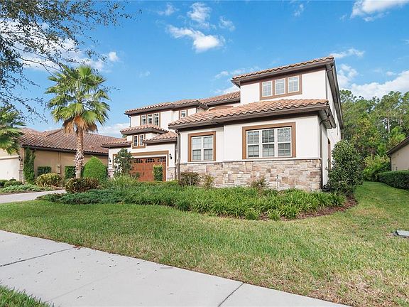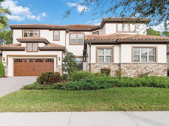 Stunning Mediterranean-Style Pool Home in The Enclave at Village Walk, Lake Nona Discover luxury living in this exquisite Mediterranean-style pool home located in the gated community of The Enclave at Village Walk in Lake Nona. Boasting over 5,400 sq. ft. of living space, this expansive residence offers 6 bedrooms, 5.5 bathrooms, and a 3-car garage perfect for modern family living and entertaining. Rent includes: landscaping, internet, cable, pool maintenance, security, and access to resort-style community amenities. Designed with timeless elegance and modern sophistication, this home features a tile roof, beautifully manicured landscaping, and exceptional attention to detail throughout. Step through the gated entry into a grand foyer with soaring ceilings, porcelain tile flooring, a dramatic winding staircase, and a custom chandelier that sets the tone for the rest of the home. The formal dining room impresses with tray ceilings, elegant trim work, and abundant natural light. The open-concept great room is anchored by a gas fireplace with custom built-ins and flows seamlessly into the chef's kitchen, featuring quartz countertops, a large center island, stainless steel appliances, a gas cooktop, and a walk-in pantry. A bright breakfast nook overlooks the pool and backyard, while a built-in desk area provides a convenient workspace for busy households. A dedicated home office with rich wood flooring completes the main level ideal for remote work or study. Upstairs, the primary suite is a luxurious retreat showcasing wood floors, a tray ceiling, and French doors opening to a private covered balcony with serene conservation views. The spa-inspired bathroom features dual vanities, a soaking tub, a rainfall shower, a makeup vanity, and a custom walk-in closet with built-ins. Five additional bedrooms all with wood flooring and custom closets gives ample flexibility for guests, family, or a second office. The outdoor living area is equally impressive, featuring a covered lanai with a motorized roll-down screen, a gas fire pit, and an extended patio overlooking lush conservation views perfect for year-round entertaining. Residents enjoy resort-style community amenities, including heated pools, a 24-hour fitness center, tennis and basketball courts, lighted walking trails, scenic bridges and canals, an on-site deli, gas station, salon, and town center. Families benefit from A-rated schools and a convenient location near Medical City, the new AdventHealth Lake Nona Hospital, and Orlando International Airport. Major attractions like Disney, Universal, and SeaWorld are just a short drive away.