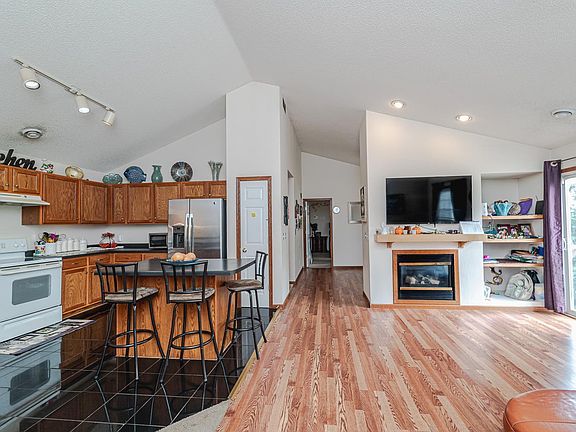 This Immaculate 3BR/2BA end unit, is upgraded w/soaring high vaulted ceilings, theater surround sound, gas burning fireplace in the family room, and it has a huge master suite, with a walk in closet and double sink in the bathroom! This home has all of its living facilities on one level, and is super close to everything: shopping, gas, movie theater, bus station & has easy access to 169 or 42. Ready for you to move in.