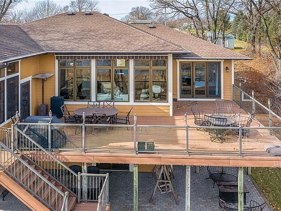 LIFE IS BETTER AT THE LAKE! Situated in a private cove surrounded by trees, you'll love lake living at Diamondhead! With multiple living spaces including a 3-season room, huge deck (800SF) & brick patio (800SF), this home has lots of room to entertain. You'll fall in love w/ all of the windows showcasing spectacular views, 3400+SF of living space, 4 bedrooms & 4 bathrooms. Bright & airy kitchen boasts center island w/ 2nd sink, granite, cooktop, hood, wall oven & tile floors. TWO laundry rooms - one off of the kitchen & one downstairs. You'll love spending time out in the beautiful 3-season room! Cozy Master BR w/ even more natural sunlight has private deck access. Master bath is stunning w/ dual sinks, jet tub & separate tile shower. Walkout LL (1638SF) offers a spacious living area, 3 BRs & 2 BA's, one w/ convenient direct access to the outside patio. Whether you're roasting hot dogs or s'mores, there's no doubt that evenings by the lake bring friends & family together!