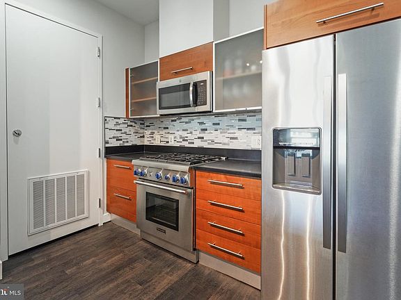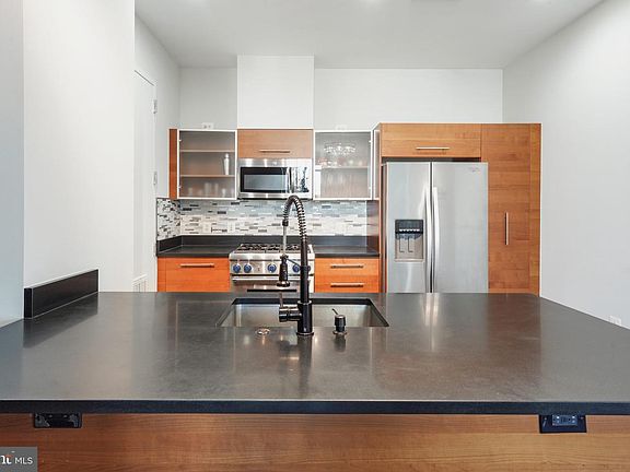 Elegant and contemporary rare corner loft style condo available for new owner to experience the lifestyle of Reston Town Center. Soaring 11' ceilings are highlighted by oversized floor to ceiling windows which fill the unit with tons of natural light. This truly unique unit in Building B features ground level entry from the courtyard, but opens to reveal a stature 3 floors above street level with panoramic views to the north and west. Foyer opens to a chefs kitchen with bar seating against dark granite counters, warm modern wood cabinets, high end stainless steel appliances including a Thermador gas range, and large pantry with floor to ceiling shelving. Kitchen overlooks the dining / living room in a truly open concept space ideal for small gatherings before a night out in Town Center, or just relaxing with a good book. Second bedroom and bathroom are on opposite side of living space from primary bedroom suite. Large primary bedroom has multiple windows, private balcony with sunset views, huge walk in closet, laundry, and large bathroom with separate shower / tub, double vanities, and separate water closet. Just outside Building B is a private fenced dog run. Parking garage below, accessible via elevator or stairs, features assigned parking (unit comes with two spaces #107 and #108) and one storage unit in parking area. Main building next door features front desk concierge, fitness center, entertaining space, and rooftop lounge area. Midtown North is located in the heart of Reston Town Center, easy walking distance to restaurants, shops, bars, gyms, movie theatre, etc. One block from Reston Hospital Center, minutes to Washington Dulles International Airport, walk to Silver Line metro, 15-20 minutes to Tysons Corner, easy access to Fairfax County Parkway, 28, 50, 29, and Dulles Toll Road (267). Matterport floorplan available (see photos or documents section) and shows sqft as 1217. Video Tour available in link in listing.
