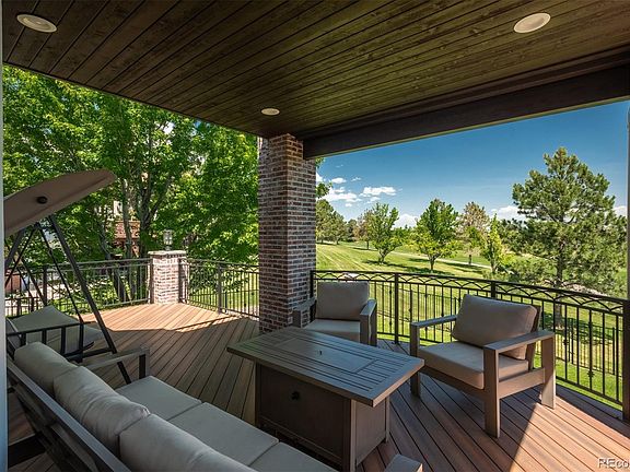 Seller is relocating & is motivated to sell! This meticulously remodeled two-story residence nestled within the prestigious Heritage Estates, boasting an expansive 1/3 acre lot overlooking the picturesque 11th fairway of the Lone Tree Golf Club. This residence exudes luxury at every turn, greeting you with breathtaking wide plank walnut hardwood floors that gracefully flow from the entry throughout the main floor and up the circular staircase. The heart of the home is the chef’s kitchen, a culinary masterpiece featuring dual generous islands, marble slab countertops, custom cabinetry, a walk-in pantry, & top-of-the-line appliances including a Décor apron front gas cooktop & hood, two ovens, microwave, & a built-in Liebherr refrigerator complemented by convenient Fisher Paykel beverage drawers and dual dishwashers. The open floor plan seamlessly connects the kitchen to the inviting great room adorned with floor-to-ceiling windows and a striking stacked stone fireplace.Upstairs, discover an oasis of comfort with new luxury vinyl plank flooring leading to four spacious bedrooms, including the primary suite, which boasts panoramic views from its private balcony and sitting room. The primary suite features a custom walk-in closet and a luxurious en suite bath complete with a steam shower, freestanding tub, and radiant heated tile floors. The finished walkout basement offers versatile spaces to accommodate every lifestyle, including a well-appointed wet bar with dishwasher and beverage refrigerator, a generous lounge area with a gas fireplace, an additional bedroom, a 3/4 bath, and an exercise room. Outdoor living is elevated with multiple decks adorned with brick columns, a spiral staircase, an outdoor kitchen space, a putting green, and a new balcony off the primary suite, providing unparalleled opportunities to savor the mountain views. Nestled within the coveted golf course community, this residence has an exceptional location just steps from the pool & tennis courts.