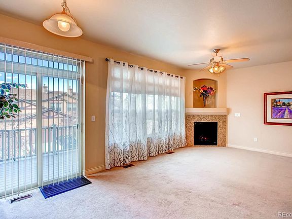 Great Two Story Townhome with a full walk out basement and mountain views from the upper floors. Tiled Entry w/Coat Closet and guest bath. High Ceilings, Lots of Light. Gas Fireplace in the Living Room. Open Kitchen w/Pantry, plus Granite and Tile Counters & hardwood floors. Appliances include a smooth top range/oven, refrigerator, dishwasher & built-in microwave. Formal Dining area and a breakfast/happy hour bar. Large full length deck next to the kitchen to take in those mountain views. Spacious master suite with a walk in closet, double vanity, separate shower and great views. Second bedroom upstairs has it\'s own bath. The laundry is upstairs also. The walkout basement has nine foot ceilings, the third bedroom and fourth bath, or use it as a large family/flex space, which is next to the oversized patio. Close to shopping, schools, hospitals & easy access to the Powers Corridor & I-25.