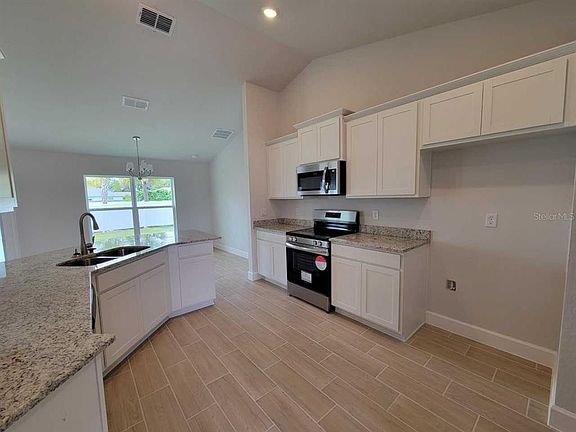 THIS HOME QUALIFIES FOR A LOW INTEREST RATE BUYDOWN WHEN BUYER CLOSES WITH A SELLER APPROVED LENDER AND SIGNS A CONTRACT BY 5PM ON 10/17/2025. THE REDUCED PRICE IS A PROMOTIONAL PRICE EFFECTIVE UNTIL 5PM ON 10/17/2025. Brand new CONCRETE BLOCK home READY NOW! This 4 bedroom 2 bath home is located in a very popular community close to shopping, restaurants, hospitals and i75! Just a short drive to the Florida Greenway or Rainbow river. Corner lot! Open floor plan great for entertaining! Home has many features including stone pkg on home, walk in tile shower and large soaking tub in master bath, tray ceiling w/crown in master bedroom, granite counter tops, stainless pkg, WOOD LOOK TILE IN ALL AREAS EXCEPT BEDROOMS (bedrooms/closets will have carpet), covered lanai, irrigation system and much more! Great community with sidewalks, playground, dog parks and community pool. LOW HOA fees include trash service! TAEXX pest control system built in home. Builder warranty! Builder helps with closing costs when Buyer pays cash or closes with Seller approved lender. Prices /Promotions are subject to change without notice.