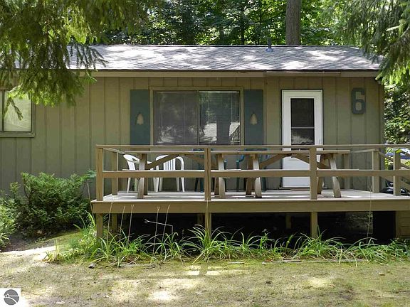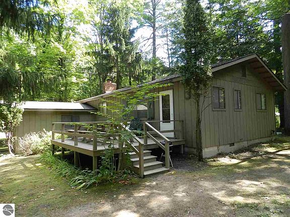 Summer FUN is HERE! Dare to Compare-2 Great Properties in One! Live or Vacation on Big Platte Lake! Must see to believe-so much space, so much potential for income or your home & rental! Very sought after area of Big Platte Lake-150' of beautiful beach, dock for your boat, fire pit, playground & game room-this has it all! Main house was original resort owners year round home, which is a 1 BR (plus another room used for sleeping) and includes a 1 car garage, basement with laundry and lots of storage! CENTRAL Air has been added to both units-rare luxury to find! Attached to the main home is a 2 BR cottage with full bath and kitchen-well maintained and rented through a rental agency-cottage currently getting $800 per week. Main House could rent for much more-that's 2 incomes on ONE Property! It is current owners vacation home & if their kids hadn't grown up they would never leave-this has been their summer playground for Years & love it! NEW Roof-Association covers the exterior & So Much More! Canoe rental walking distance-great location just outside the quaint Village of Honor! Hurry Before this one is GONE!