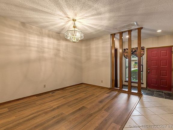Move-In Ready Timbers Condo in Jenks Schools! Tucked away on a quiet Wildwood cul-de-sac near the tennis courts, this desirable Spruce floor plan offers rare privacy with no condos directly behind. Recent updates include new vinyl plank flooring, fresh carpet, interior paint, and epoxy-coated garage floors. Enjoy a welcoming front entrance with patio, plus the convenience of a chair lift if needed. Major mechanicals are already taken care of with a new upstairs furnace (2024), newer downstairs unit (approx. 5 years), and hot water heater (2 years). Fresh, stylish, and move-in ready.