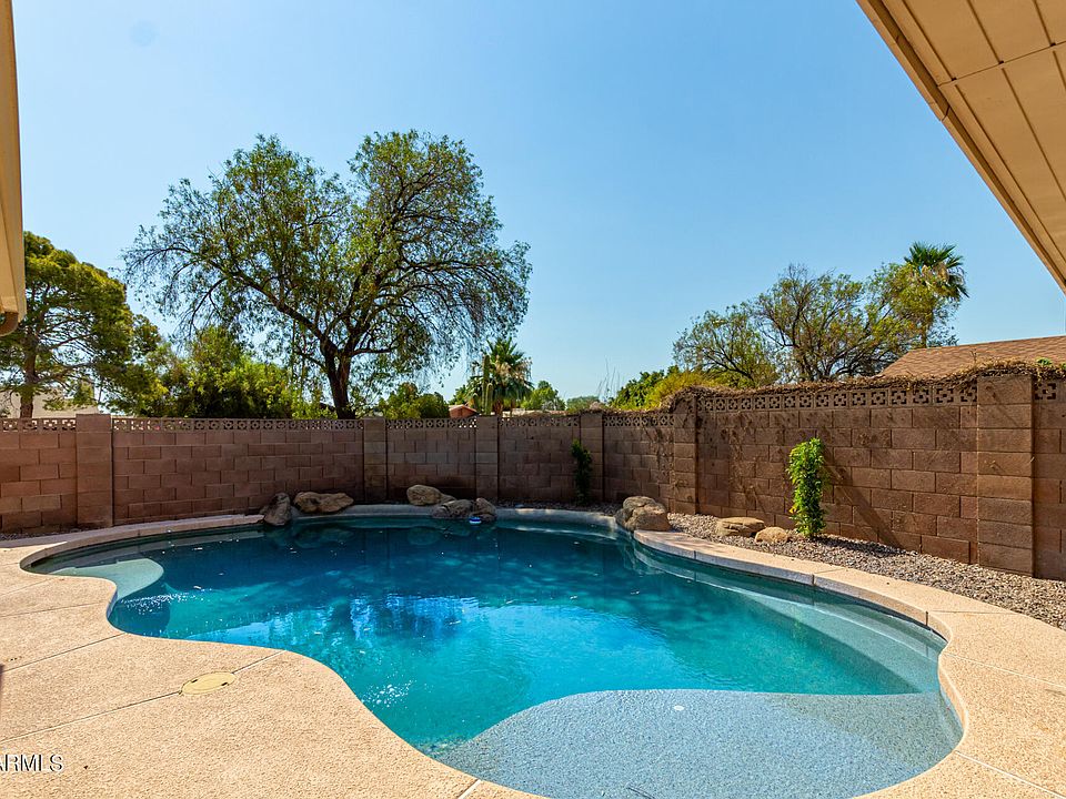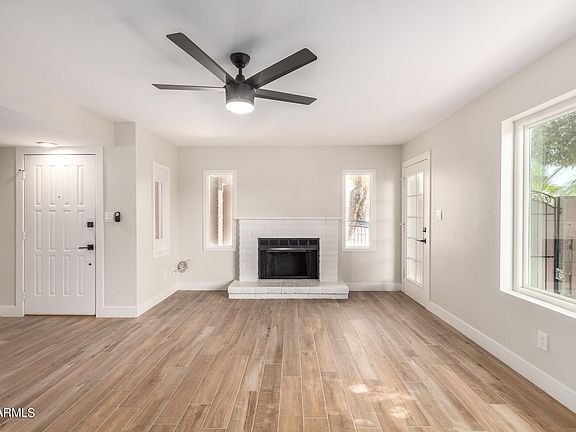 Remodeled Scottsdale Gem with a Pool! Your new home has 3 bedrooms,+ a den, 2 full bathrooms with wood look plank tile flooring throughout. Kitchen is open, light, and bright with granite countertops, stainless steel appliances, built in oven and microwave, and a skylight. Entire home is neutral colors, lots of windows, and North/South exposure. Primary bedroom has beautiful herringbone floor detail, walk in closet upgraded by Classy Closets and a separate exit that leads to a covered patio. Cozy fireplace in the living room for the Arizona winter nights. Minutes away from Scottsdale, Old Town Scottsdale, shopping, restaurants, and Spring Training Baseball fields! Under 10 miles to PHX Sky Harbor Int'l Airport.