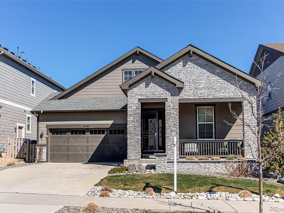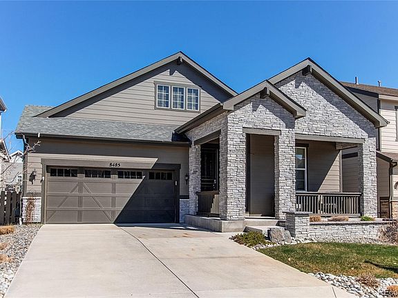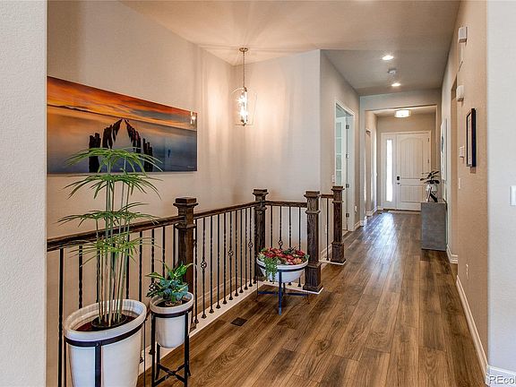 Price Drop!  Welcome to Colorado's Premier Master Planned Community in an idyllic valley at the gateway to the Front Range, nestled between two state parks, three regional parks and a national forest. Richmond American Homes is the builder of this well appointed ranch style floorplan with builder quality finished basement living area, professional exterior landscaping, covered front porch and covered patio, ideal for nearly year round entertaining. Main floor living offers a private guest bedroom suite, a convenient study with French doors, a full primary owner suite with upgraded master bath features, raised vanity, and a generous walk-in closet with custom finishes and storage.  Th deluxe kitchen offers an expansive island with eating area, pendant lighting, walk-in pantry, GE Profiles Stainless Appliance package including stainless vent hood to ceiling, upgraded cabinets with lower level roll outs, and utility closet and organization area at garage entry.  The main floor family room is open with entertainment area, eating area, and easy access to the covered patio.  As an original builder finished feature of the home, the staircase to the finished basement has wrought iron spindles and wood hand rails and is open to the level below.  The main floor has luxury vinyl flooring and designed blinds throughout.  The finished basement level sports a large, open recreation/media room, two additional bedrooms and bath, and an unfinished storage area.  Window wells are covered with egress ladders in bedrooms.  The garage is finished with epoxy flooring and custom cabinet installation which will remain with the home.  Come see all that this master planned community has to offer in local amenities, trails, services and access to parks and recreation in the surrounding areas.  Community park opening soon immediately west of home.