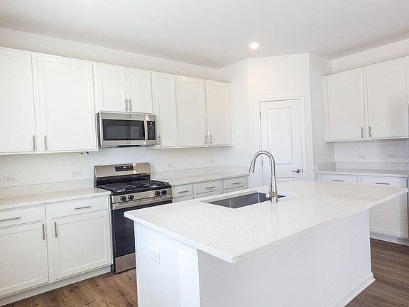 The kitchen boasts ample cabinet space with polished nichel pulls and quartz countertops, a generous island with a sink, plus a sizable pantry for all your storage needs. Upstairs includes 4 generously sized bedrooms, 3 with walk-in closets. The owners suite includes a private bath.